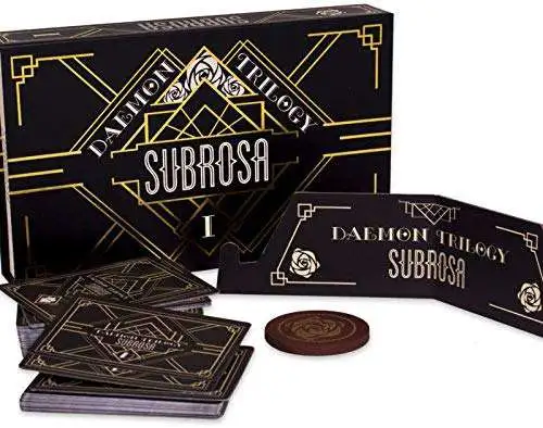 Daemon Trilogy: Subrosa is a card drafting skirmish game where players compete to fulfill contracts and gain the most influence in the Empire. Game designer Nate Weisman introduces players to the first in a series of AP enhanced, persistent progression card games. Subrosa takes you along a story of power, control, and double-dealings in a battle of supremacy between the 5 great houses. Recruit mercenaries from your hand to take on and fulfill contracts. Completing these contracts will win you influence and, eventually, control of the Empire. Team up with allies for mutual protection or stealthily encourage your opponent?s quarrel. How to win is up to you, but remember to keep your enemies close, and your friends even closer.