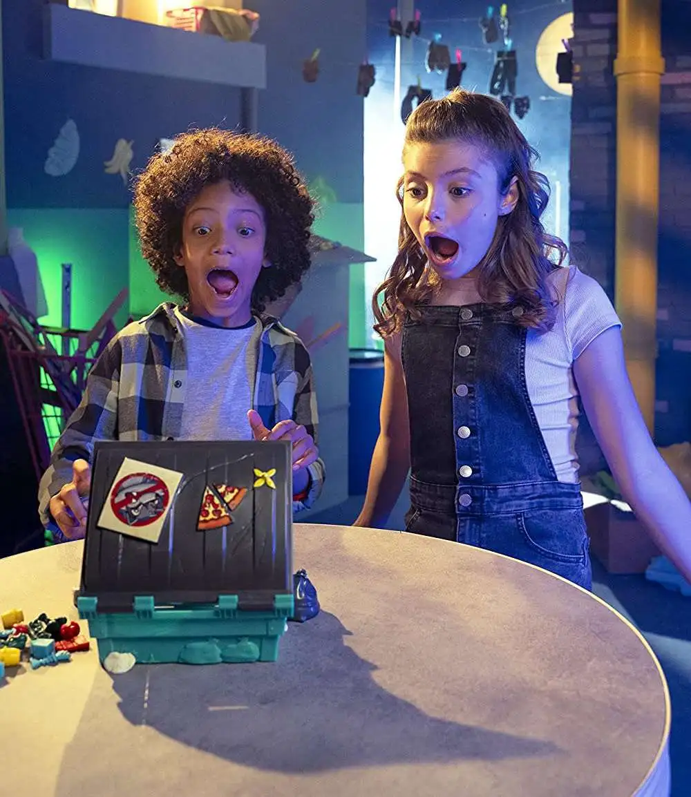 This raccoon does NOT want to give up his treats! Roll the die and carefully sneak his snacks out of the dumpster without getting caught!If you get caught, his larger-than-life paw will jump out and defend his goodies!No batteries required for endless kid-powered fun, and no reading required so even the youngest players can get sneakyIncludes a fun, colorful 24-piece puzzle!