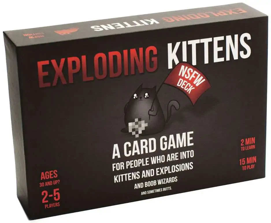 This NSFW version of the game contains the full version of Exploding Kittens, but the artwork on each card has been replaced with content too horrible/amazing to be used in the original Exploding Kittens game. The NSFW Edition can be played with 2 to 5 players or combined with any other deck to play with up to 9 players.