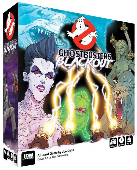 After a major power outage struck New York, the Ghostbusters must set out to capture all the ghosts escaping from their containment unit. With the whole city suffering from a blackout and an onslaught of ghost rampaging around, its up to the Ghostbusters to quell the chaos and get those ghosts busted! Ghostbusters: Blackout is a fully cooperative board game for 1-4 players. In it, players roll dice and allocate them to move around the city, capture ghosts, and buy upgrades for their ghost-busting tech, all while trying to keep the city from collapsing from the ensuing chaos!