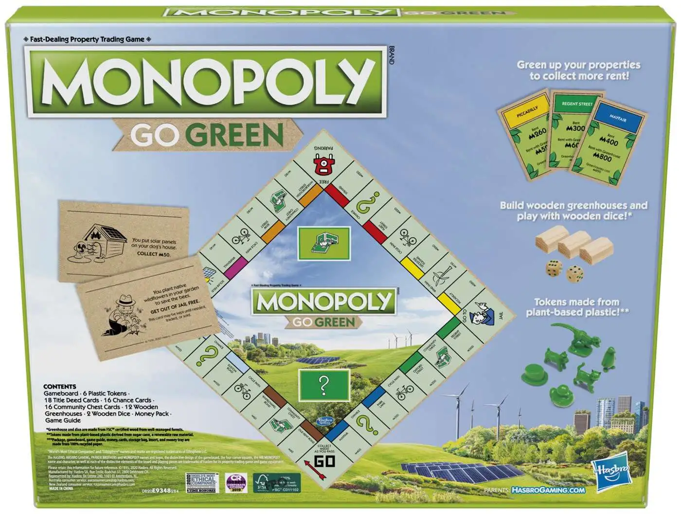 Monopoly Go Green Board Game, Game for 2-6 Players, for Kids Ages 8 and Up