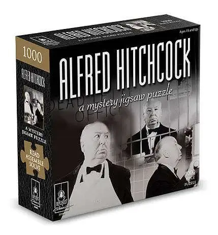 A puzzling mystery and mystery puzzle in one! Read the mystery Obsession and assemble this challenging 1,000-piece puzzle to discover the cryptic clues hidden within. This sinister mystery revolves around a psychopathic killer obsessed with Hitchcock’s famous movies – The Birds, Psycho, and Frenzy. The finished picture is a secret, as it is not pictured on the box, adding to the thrill of the game. Keep your wits about you to solve this mystery and catch a killer before he or she strikes again! Ideal for Hitchcock and mystery fans. Completed puzzle measures 23″ x 39″.