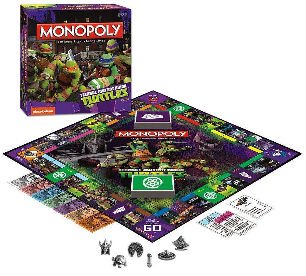 Cowabunga, dude! The Teenage Mutant Ninja Turtles and their locales take center stage in this special edition Monopoly set!