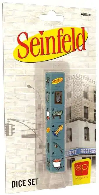 This dice set by USAopoly features iconic images from the TV show Seinfeld.