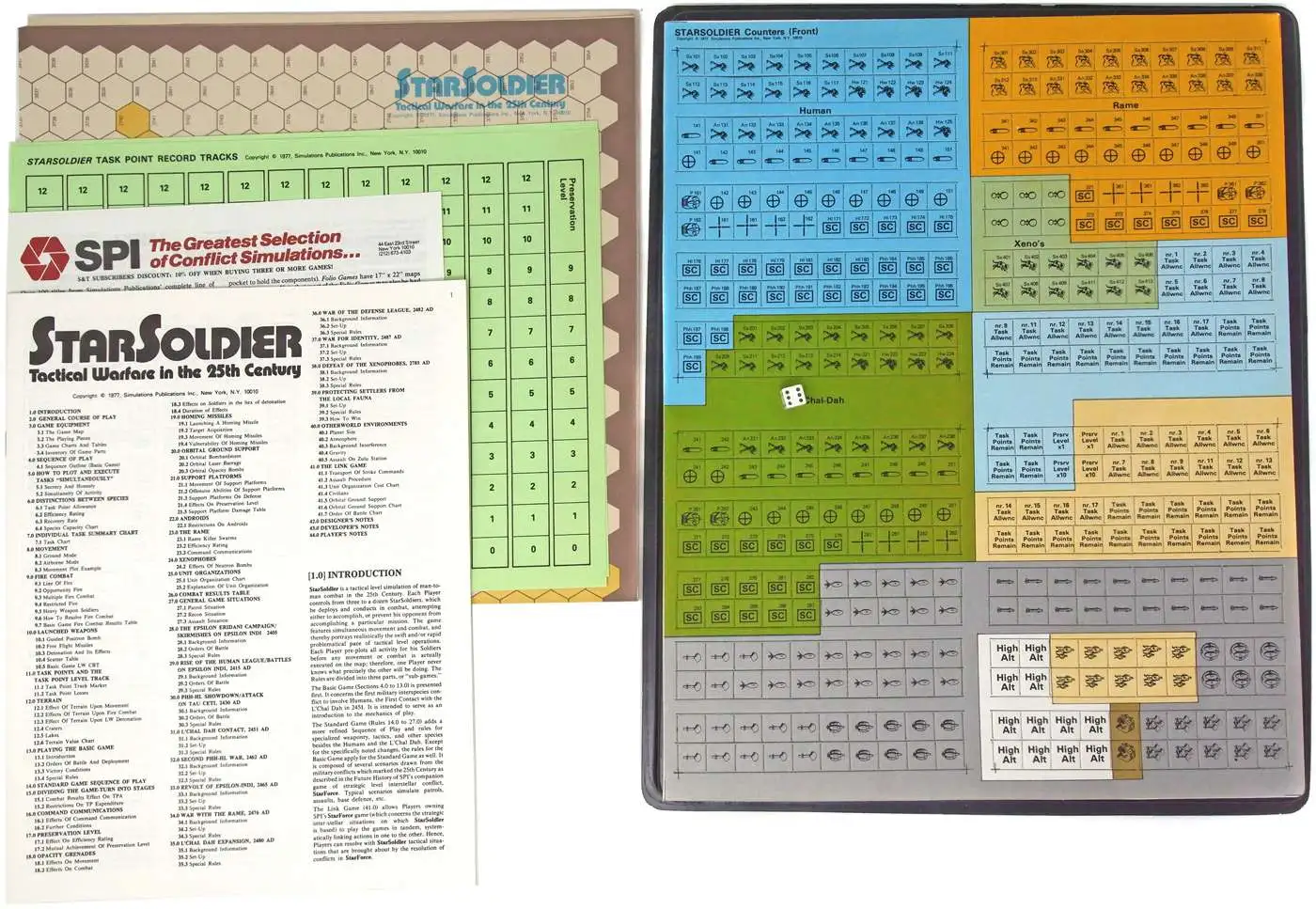 A tactical level simulation of combat between a small number of StarSoldiers, powerful future warriors – shades of Starship Troopers. Firmly rooted in SPI wargaming – along with the usual complexity and breadth of rules. One notable about the game is that it has simultaneous plotted movement – manageable since each player only controls 3 – 12 warriors. There are many scenarios and a campaign as well.