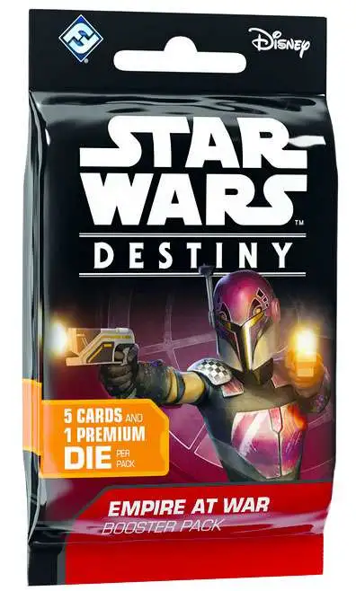 Empire at War emulates the chaos found in the Star Wars galaxy during its darkest times with themes that disrupt your opponents board and decimate their best laid plans. These 160 brand-new cards will focus on taking core concepts of Star Wars Destiny and throwing them into disarray. Empire at War brings the thrilling action of Star Wars Rebels to the tabletop. Join the crew of the Ghost and their adversaries as they join the epic duels taking place across every era of the Star Wars saga. Every booster pack includes five randomized cards and one premium die, broken down into three common cards, one uncommon card, and one rare or legendary card with a corresponding die. All cards that feature a corresponding die are either rare or legendary cards. With every booster pack, youll find new characters, supports, upgrades, or events, along with new ways to enter the Star Wars galaxy and fight for your chosen side!