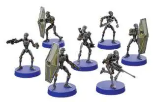 Whether you use them to target key enemy personnel or plant deadly dioxis mines, the seven BX-series droid commando miniatures you find in this expansion are highly customizable. Several weapons optionsincluding blasters, vibroswords, and a dioxis chargeas well as deflector shields give you the freedom to build the unit of commando droids youve always wanted, while eight upgrade cards invite you to outfit them to fit your particular strategy. Upgrade your army with the BX-series Droid Commandos Unit Expansion!