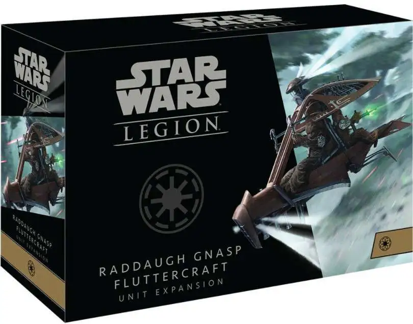 Within this expansion, youll find everything you need to add a Raddaugh Gnasp Fluttercraft to your Republic armies as a support unit. A beautifully detailed, unpainted hard plastic miniature brings this unit to life on your tabletop, while a unit card outlines all of its capabilities, including the new Overrun keyword. Finally, five upgrade cards invite you to choose exactly how this unit behaves in combat.