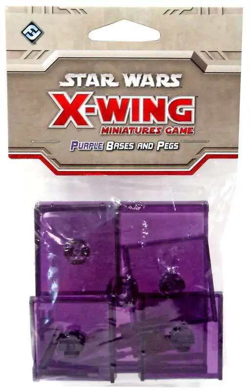 Customize your X-Wing squadron with colored X-Wing Bases and Pegs. Available in six different colors, these accessory packages come with four small bases, ten small pegs, one large base, and three large pegs. All these bases and pegs are made to the same specifications as standard X-Wing bases and pegs, so they are fully tournament-legal. Use these bases to identify the different ships in your squadron, to distinguish your squadron from your opponent’s, or simply to add an extra touch of color to your battles for the galaxy. Choose from Blue, Clear, Green, Orange, Purple, or Red.