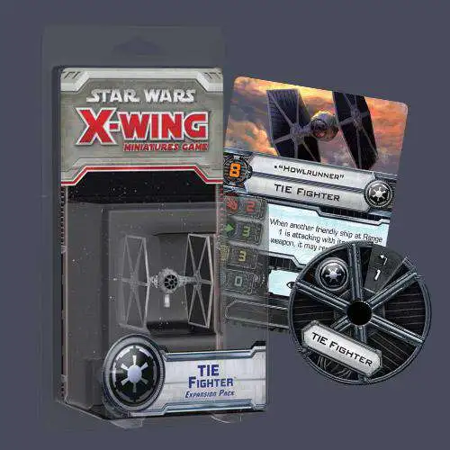 Relying on speed and strength in numbers to overcome their enemies, TIE fighters have only a pair of laser cannons and lack shields of any kind, yet their dexterity makes them dangerous opponents. The TIE Fighter Expansion Pack for the X-Wing Miniatures Game includes one stunning miniature, plus its necessary cards, tokens, and dial. Also included are six pilots, like the crafty Imperial pilot Backstabber, one of Darth Vaders wingmen in the Battle of Yavin.