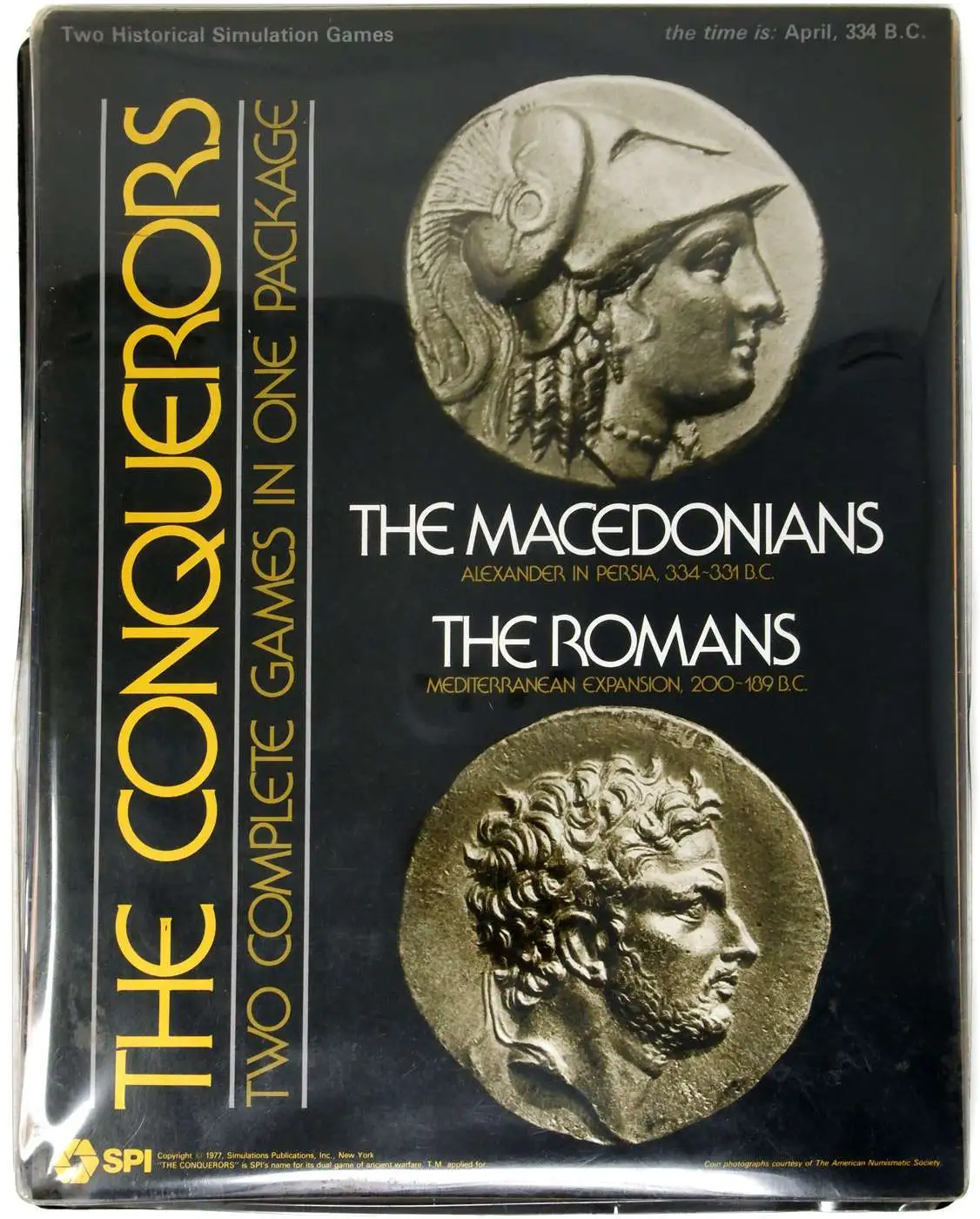 The Conquerors: The Romans and The Macedonians is a strategic and tactical simulation of the eastward expansion of the Roman Republic after the Second Punic War, which ended in 200 B.C. Two specific periods are covered: the Second Macedonian War (against Philip V), in which Rome laid its claim for control of Greece (albeit in somewhat defensive posture), and the Syrian War (against Antiochus, the Selecuid king), wherein Rome made its first incursions into the Asian continent. The latter Scenario uses both maps in The Conquerors game (that of The Romans along with that of The Macedonians).