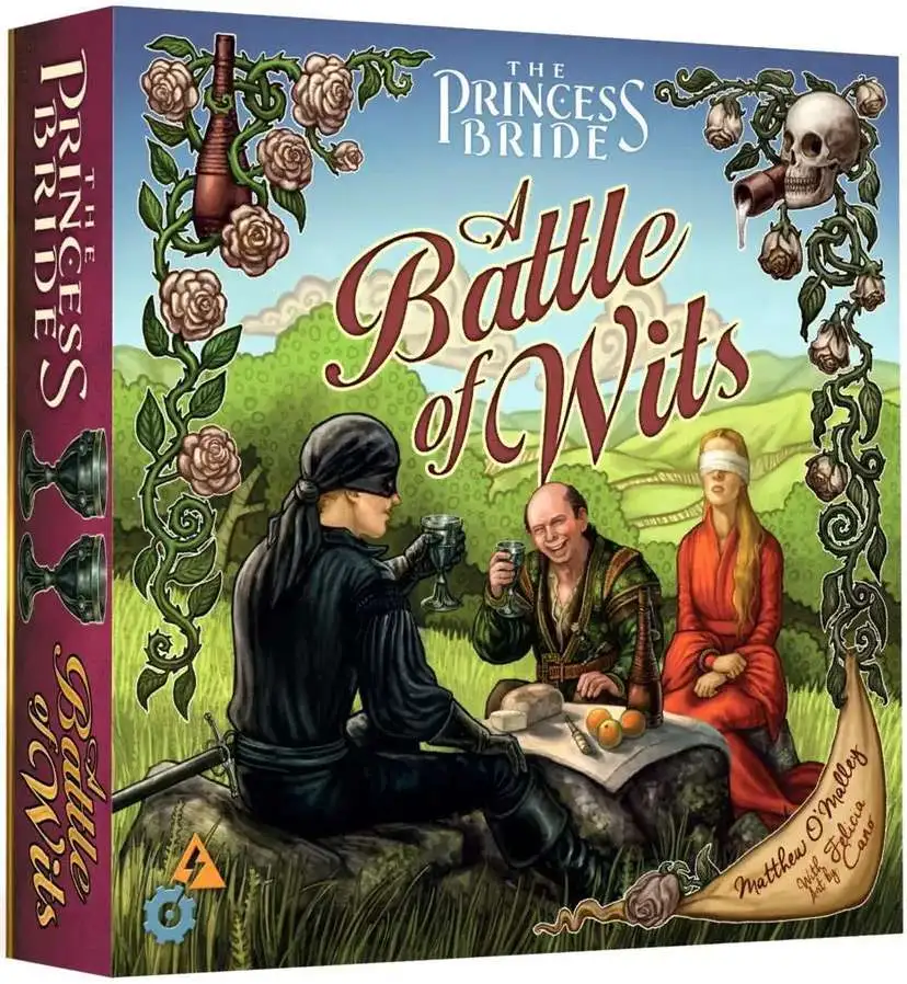 The Princess Bride: A Battle of Wits is an exciting game of bluff and double bluff for two to ten players. A row of goblets sit in the middle of the table, ready to be filled with either wine or poison. Players each take the role of one character but it is only at the very end of a game that they will drink, one from each goblet. During the game, they must play their cards, one each turn, either into the top of a goblet (adding poison or wine to a goblet) or to the bottom of a goblet (bidding on the goblet). Who will fall prey to their enemies and who will eliminate themselves? Only the most intelligent will survive!