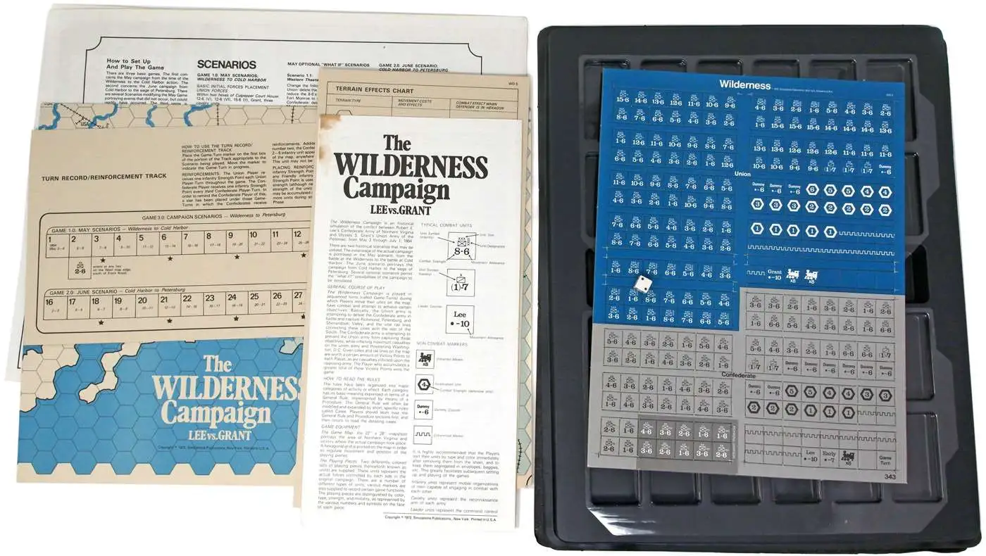 The Wilderness Campaign is an historical simulation of the conflict between Robert E. Lee’s Confederate Army of Northern Virginia and Ulysses S. Grant’s Union Army of the Potomac, from May 3 through July 1, 1864.