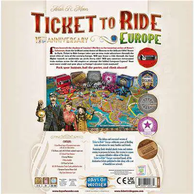 This deluxe and oversized version of Ticket to Ride Europe celebrates years of thrilling train adventures for many families and friends.