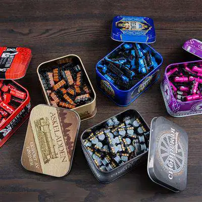 Featuring finely detailed plastic trains and stations coming in gorgeous tin boxes, this version is a spare no expense definitive edition of the classic Ticket to Ride Europe: oversized board, all the destination tickets published to date along with a set of beautiful new artwork.