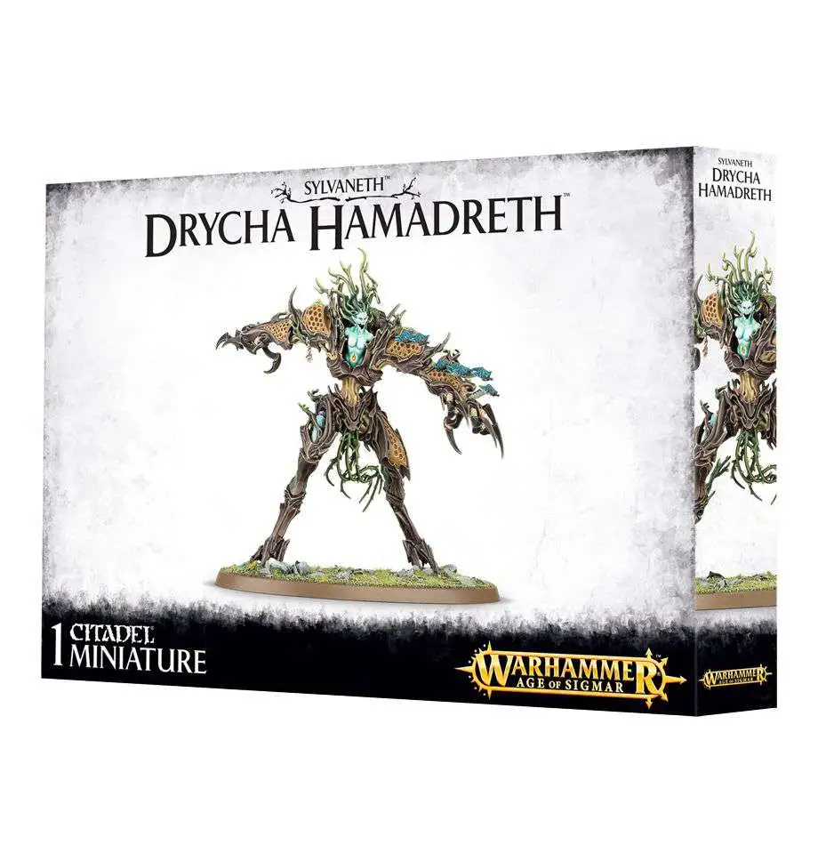 This multi-part plastic kit contains all the parts necessary to build Drycha Hamadreth. Her body is the host for either a colony of Flitterfuries or a swarm of Squirmlings, and she is armed with slashing talons and thorned slendervines. She comes supplied with 12 spites and one Citadel 105x70mm Oval base.